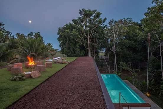 Em um condomínio fechado no alto das famosas falésias, o terreno de aproximadamente 1.600,00m2, cercado pela mata Atlântica, a 10 minutos de caminhada até o famoso quadrado e 15 minutos até a praia foi o local escolhido. A implantação da casa no terreno respeitou à topografia natural, e a vegetação existente, se moldando, sem executar cortes nem aterros e com a remoção de apenas 4 árvores de pequeno porte.
